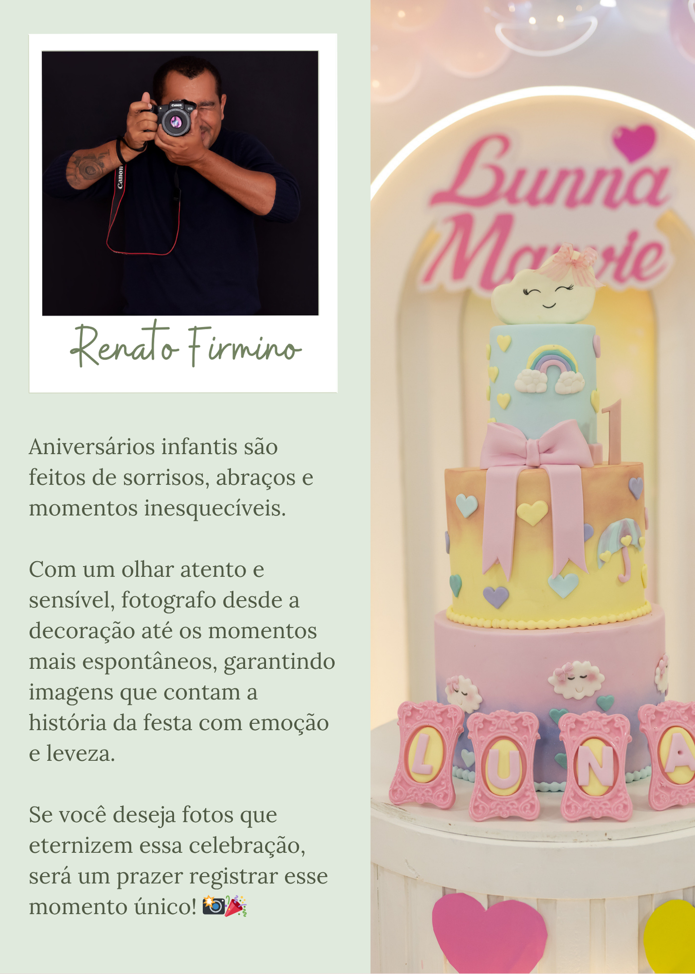Sabemos a importância de um momento como esse, por isso a importância de um registro profissional com um olhar experiente para esse evento. Nós da equipe Renato Firmino Fotografia estaremos sempre atentos para não perder nenhum momento e entregar um trabalho especial para você e sua família.